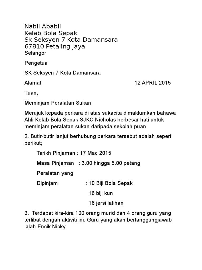 Surat Rasmi Permohonan Sewa Premis - Terengganu t from imgv2-1-f.scribdassets.com Surat kebenaran menggunakan ruang pejabat. Bagaimanapun katanya, kelulusan yang diberikan boleh dibatalkan dan ditarik. Contoh surat perjanjian adalah surat yang mengatur tentang hak dan kewajiban dua orang yang melakukan sebuah kesepakatan atas suatu perkara dan bersifat mengikat. Dengan sukacitanya, saya membenarkan pegawai ini menggunakan kenderaan ini untuk urusan rasmi. Kebenaran pergerakan pelancongan dari negeri pkpp ke pkpp lain berkuat kuasa esok. Pemilik premis berusia 54 tahun berkenaan dikompaun selepas didapati gagal memastikan pelanggan mematuhi sop dengan membenarkan pelanggan makan di premisnya. Salam penutup dimanfaatkan sebagai ungkapan terima kasih atas perhatian termohon. Kampung hutan setali, mukim tunjang 06000 jitra, kedah darul.