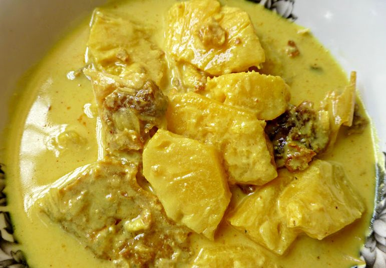 So, this udang masak lemak nenas, is a light curry of prawns and pineapple in coconut milk.
