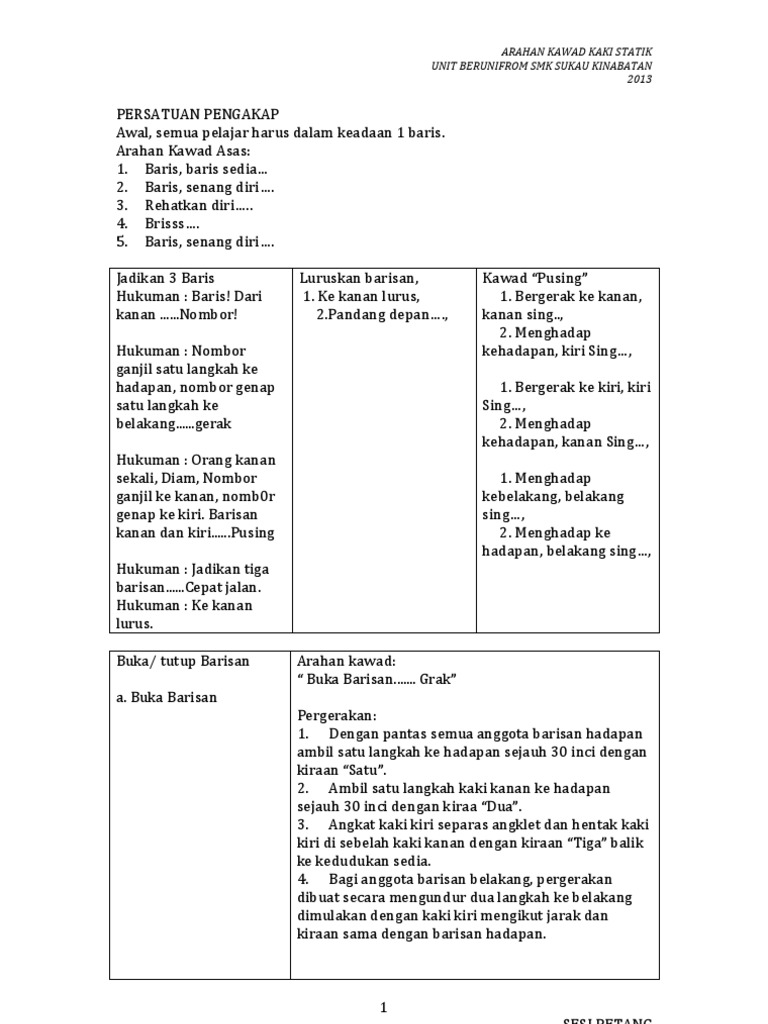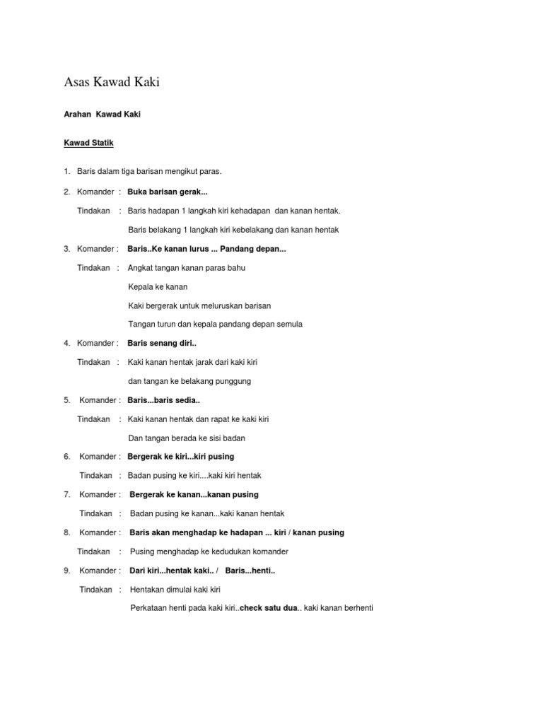 Kata arahan kawad december 2019 66. More images for arahan kawad kaki asas » 78% (9) 78% found this document useful (9 votes) 17k views 4 pages. Ppimsekolahrendah saturday, december 26, 2009 arahan asas kawad kaki asas kawad kaki pergerakan 1. Jari tangan digenggam ibujari tangan.